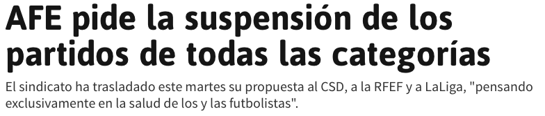 Il calcio chiude le porte anche nel resto dell’Europa. Questa mattina, mentre l’AFE (Associazione dei Calciatori Spagnoli) chiedeva lo stop al campionato, la federcalcio spagnola ha decretato che i prossimi due turni di Liga e Segunda Divisiòn saranno a porte chiuse, a poche ore dal blocco dei voli fra Italia e Spagna che potrebbe mettere a serio rischio anche la partita di Europa League fra Siviglia e Roma (clicca qui).