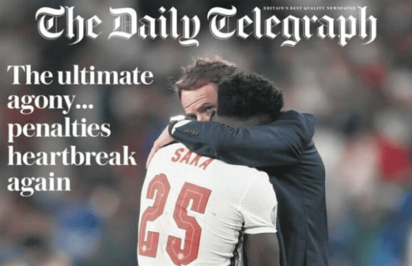 “L’Inghilterra perde di nuovo ai rigori ma non fa niente…i Mondiali sono il prossimo anno”. È questo il grido del Sun nel giorno dopo la sconfitta in finale della squadra di Southgate contro l’Italia di Mancini. La foto scelta quasi all’unanimità dai quotidiani d’oltremanica è l’abbraccio fra il commissario tecnico e Bukayo Saka. “Finisce tutto in lacrime” l’apertura del Daily Mail. “Wembleyazo” titola Marca, “Invincibili” è il lancio dell’Equipe.