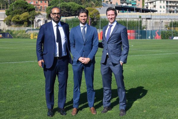 I canali social del club più Antico d’Italia sono in grande fermento oggi, dopo gli annunci ufficiali della cessione del Genoa al Fondo 777 Partners. La notizia, che ha travolto di entusiasmo la piazza rossoblu, vive di passaggi graduali: uno di questi è il primo approccio del nuovo team di compratori al centro sportivo “Signorini”. Pochi minuti fa il Genoa ha diffuso una prima foto di Andreas Blazquez, Josh Wander e Juan Arciniegas (a partire da sinistra, ndr) sul terreno di gioco di Pegli, rinnovato da poco più di un anno. Il Genoa a stelle e strisce è ufficialmente partito.