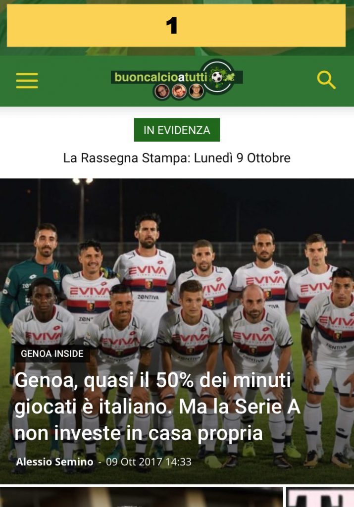 Vuoi dare visibilità alla tua attività attraverso la nostra testata online? Vuoi comparire nella nostra Tribuna Vip? Contattaci via mail all’indirizzo redazione@buoncalcioatutti.it e sarà nostra cura ricontattarti per fornirti maggiori informazioni. Puoi essere presente con banner personalizzati presenti in header, footer e in varie altre posizioni di ogni pagina (guarda esempi seguenti) o con una pagina dedicata.