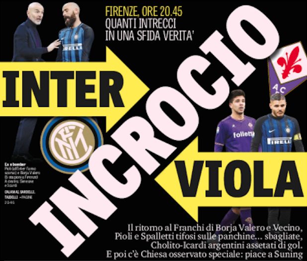 Oggi torna la Serie A, lo fa con Chievo-Udinese alle ore 18 e Fiorentina-Inter alle 20,45. “Spalletti: stasera la Viola, poi Deulofeu” si legge nella prima di Tuttosport.