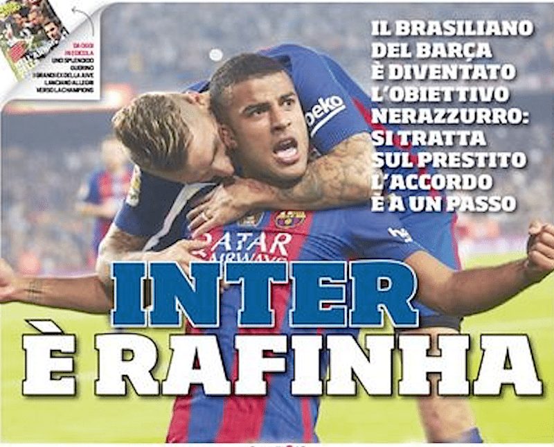 Daniel Sturridge si propone, Spalletti ci pensa. Per il Corriere dello Sport è Rafinha del Barcellona il nome nuovo a cui potrebbe pensare la squadra di Corso Vittorio Emanuele II.