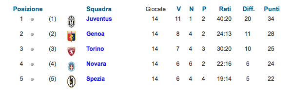 Nel primo pomeriggio sono invece i bianconeri a farla da padrona contro il Genoa di Oneto, che scivola al 5° posto in classifica dopo la sconfitta maturata a Vinovo: doppietta di Fontana, poi reti di Cavallo, Sekulov, Sterrantino e De Marzo. Inutile ai fini della classifica il gol del solito Conti.