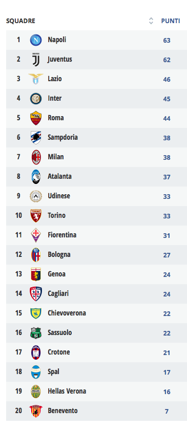Sarri. Questa sera ci ha pensato il Napoli con le reti di Callejon, Zielinski e Mertens a riprendersi il primo posto sfoggiando un secondo tempo oltremodo positivo.