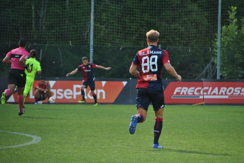 Nicolas Spolli è il metronomo di una difesa che predilige il gioco palla a terra ma azzarda anche lanci lunghi, Lazovic viene lanciato a più riprese dai compagni di reparto. Mentre ci avviciniamo alla mezz’ora di gioco, il Genoa resta in vantaggio per 1-0. Punizione di Martignacco, Marchetti smanaccia lontano il traversone sul secondo palo del numero 10 biancazzurro. Al 34′ azione tutta in verticale sull’asse Hiljemark-Rolòn: lo svedese cerca l’argentino, che di prima serve Pandev a tu per tu con il portiere. Il macedone conclude a lato, ma i due centrocampisti del Genoa si dimostrano tanto affiatati in allenamento quanto in partita.