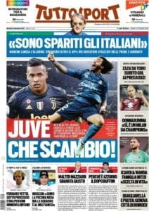 La Gazzetta dello Sport fa i conti in tasca alla Serie A andando a vedere tutti gli ingaggi delle varie formazioni del massimo campionato, mentre il Corriere dello Sport sollecita le cosiddette “anti-Juve” a ritirarsi su e andare ad insidiare la formazione bianconera sola al comando. Tuttosport, dal canto suo, rilancia le parole del commissario tecnico Mancini che parla di pochi italiani fra cui scegliere per comporre la sua Nazionale e comincia già a buttare l’occhio a gennaio, quando all’orizzonte potrebbe profilarsi uno scambio fra Alex Sandro e Marcelo.