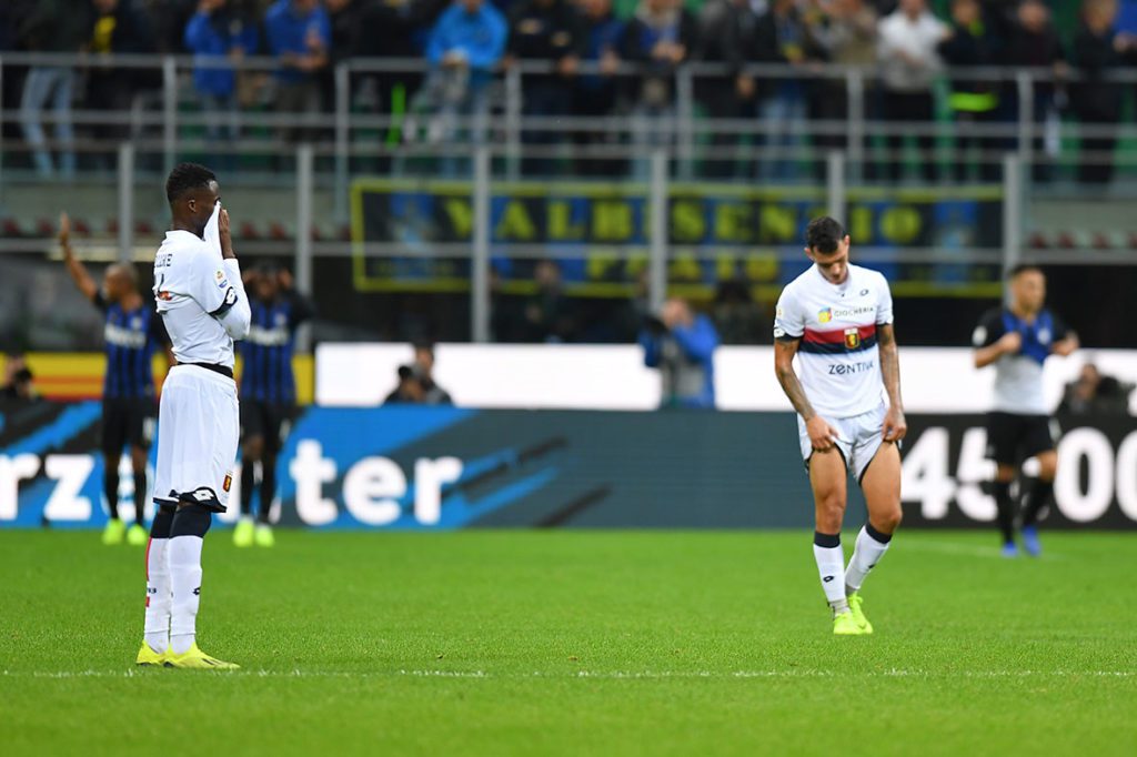 Al 6′ primo corner per il Genoa, calciato da Romulo e sventato dalla difesa nerazzurra. Qualche secondo dopo Skriniar chiude su Kouamé, che ammette di aver colpito per ultimo il pallone: Valeri assegna la rimessa dal fondo fra gli applausi del pubblico per un gesto di rara sportività.
