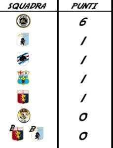 Il Genoa “A” domenica prossima affronterà il San Giovanni Battista, mentre il Genoa “B” se la vedrà contro la Virtus Entella “B”. Poi si andrà a Gallipoli dal 6 al 9 dicembre per il Trofeo Caroli Hotels, che coinciderà col quarto turno di campionato. In tal senso dovrebbe – ma ancora non ci sono ufficialità di alcun tipo da parte della Federazione, è bene specificarlo – essere rinviata la sfida contro lo Spezia. Il Genoa “A”, nella classifica sottostante, risulta avere solamente un punto (e non 4) perché la partita di oggi con una formazione “B”, per regolamento, non portava punti (stesso discorso è valso per la Sampdoria, vincitrice contro l’Entella B, ndr).