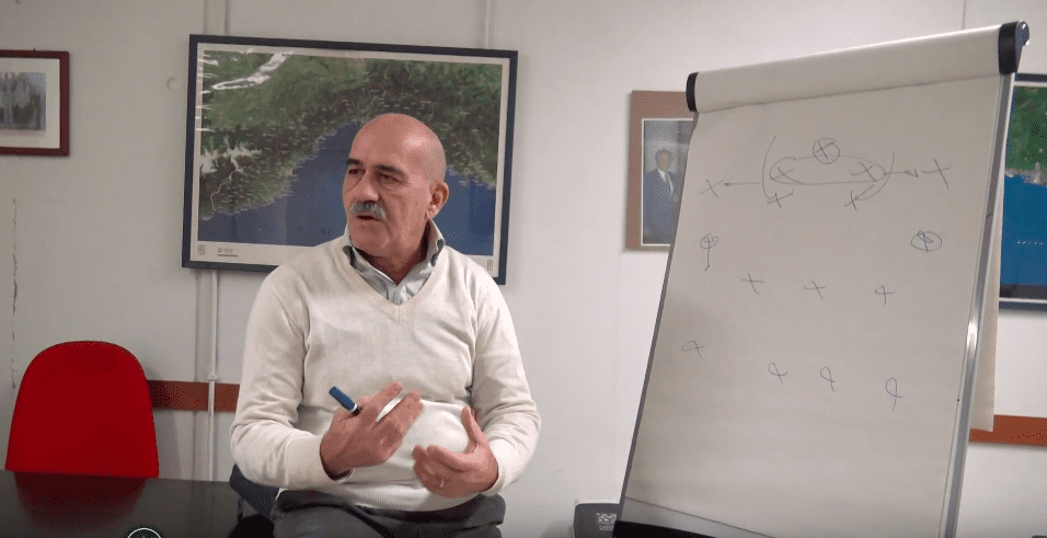 Piove. C’è freddo. Ma a riscaldarci la pancia della Gradinata Nord, in via Clavarezza, dove ha sede l’AIAC Genova presieduta da Giovanni Masala, presidente dell’Associazione Italiana Allenatori di Calcio della sezione genovese. Lavagna e pennarelli alla mano, Masala ci serve un antipasto “tattico” sul prossimo derby. Su come potranno giocare Genoa e Sampdoria, Juric e Giampaolo. “Il tecnico rossoblu preparerà la partita in maniera quasi maniacale. Quello blucerchiato cercherà conferme: dopo avere avuto una delle migliori difese d’Europa, la Sampdoria è diventata una difesa come le altre. E durante la pausa Giampaolo avrà lavorato su questo aspetto in maniera specifica“.