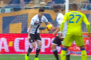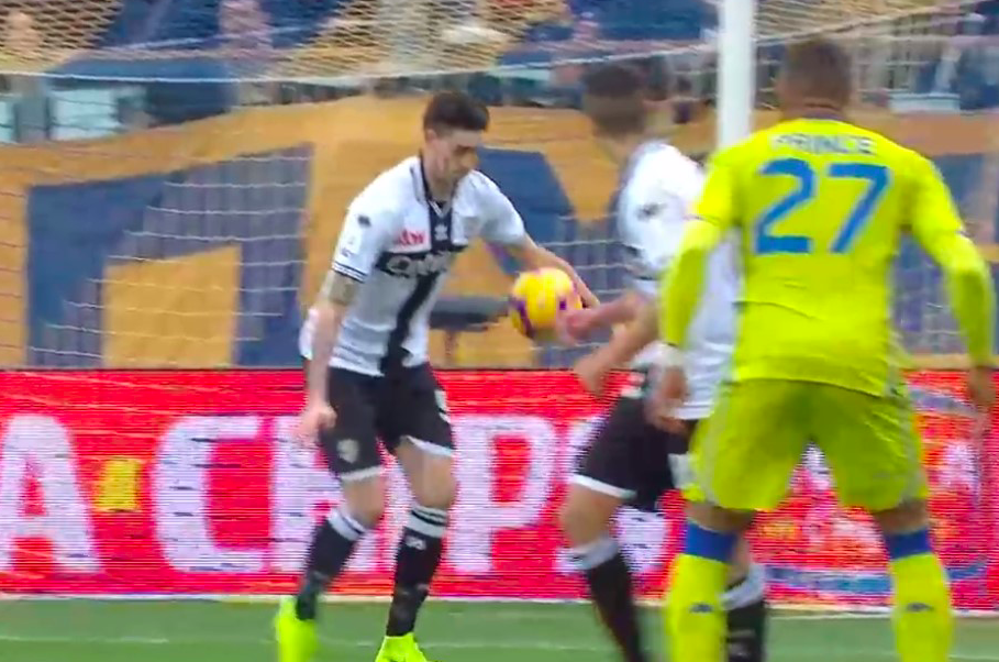 PARMA-SASSUOLO – Episodio che inasprisce gli animi al “Tardini” è quello che avviene nel finale di primo tempo, al 42esimo di gioco, quando il difensore crociato Bastoni intercetta col braccio sinistro il pallone in area di rigore. Valeri, arbitro della sfida, fa proseguire salvo poi essere richiamato quasi un minuto e mezzo dopo dal VAR (Abisso). La situazione è da valutare nuovamente, anche se Valeri si mostra deciso fin da subito nel confermare quanto visto in campo con la visuale sgombra: il pallone ha prima toccato il ginocchio, poi il braccio, molto largo e non certo attaccato al corpo. Non è il primo episodio che porterà Valeri, nonostante la revisione al VAR, a confermare la scelta fatta in campo, ossia non assegnare penalty. Pur vero, tuttavia, che creerà sicuramente l’ennesimo precedente: chissà quando un’analoga dinamica, di qui a maggio 2019, porterà non più alla conferma della decisione, ma al ribaltamento della scelta e all’assegnazione del rigore. Essendovi un discrimine tra volontarietà e involontarietà, ad oggi rimane tutto sotto l’egida dell’interpretazione arbitrale.
