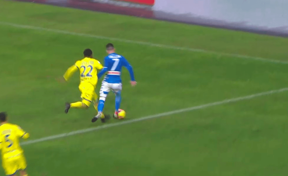 NAPOLI-CHIEVO – Si chiuda con la sfida del “San Paolo”, terminata sul pareggio anche per opera dell’arbitro Chiffi. Il fischietto padovano – e con lui il VAR – avranno sicuramente rivisto il contatto Obi-Callejon in area di rigore al 28esimo del primo tempo e si saranno chiesti come mai non lo si sia voluto riproporre sul mini schermo a bordo campo. La dinamica è chiara anche ad immagini ferme: il giocatore clivense è in ritardo su quello partenopeo e la sua gamba sinistra sgambetta quella di Callejon. Il rigore sarebbe solare già a velocità di gioco, ma la distanza che intercorre fra Chiffi e la zona dove avviene il fallo è considerevole. Sarebbe dovuto intervenire il VAR (Nasca) per accordare un rigore molto evidente. Napoli penalizzato, così come manca un cartellino giallo a Zielinski a pochi secondi dal fischio d’inizio per aver fermato un contropiede di Pellissier.