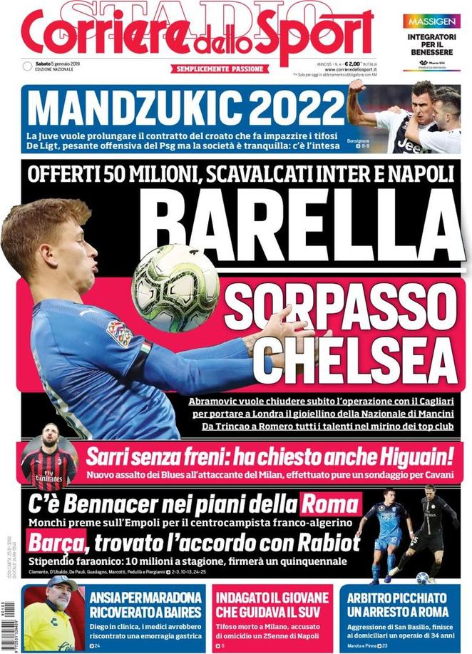 Calciomercato, calciomercato, calciomercato. Entrati ormai nel pieno di questo delirio di nomi e trattative, spiccano l’interesse del Chelsea per Barella e Higuain, l’interesse del Napoli per Manuel Lazzari della Spal e l’addio definitivo di Rabiot al PSG, che saluta per accasarsi al Barcellona. Attenzione anche all’Inter, che dopo le prime avvisaglie arrivate a fine novembre, sembra aver concretizzato per giugno l’arrivo dell’esperto difensore dell’Atletico Madrid Godìn. La Sampdoria fa suo il norvegese Thorsby.
