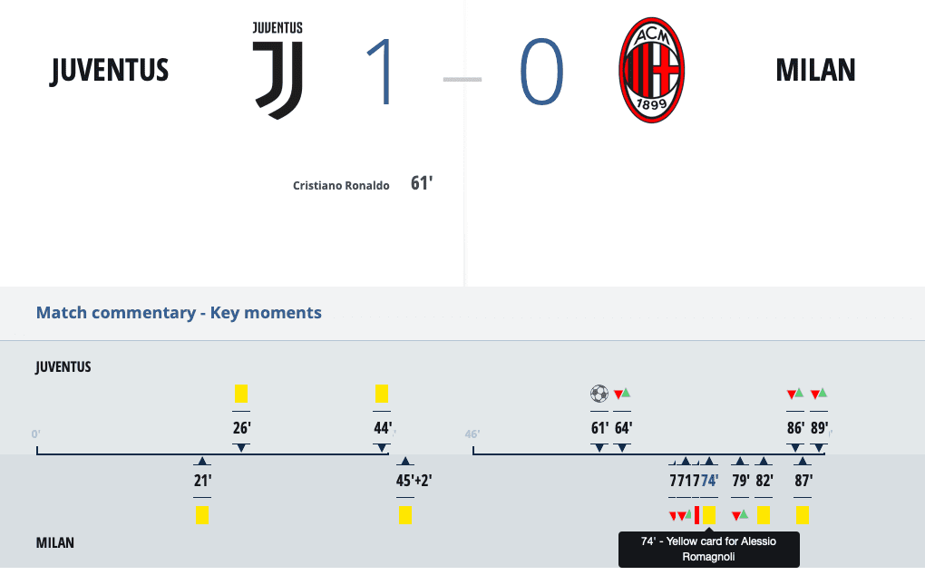 Come riportatovi in tempo reale questa sera, il sito della Lega Serie A aveva attribuito un cartellino giallo per proteste anche al difensore del Milan Alessio Romagnoli nel corso della Supercoppa Italiana fra rossoneri e Juventus, gara vinta dai campioni d’Italia grazie a un colpo di testa sferrato da Cristiano Ronaldo.