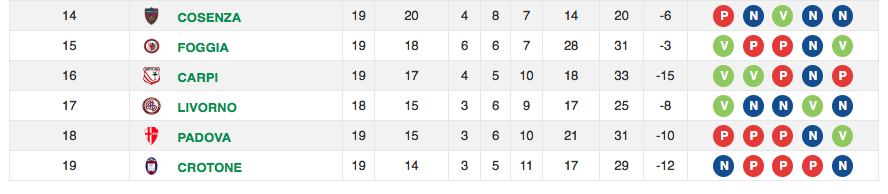 Notte fonda per il Crotone, che non vince una gara da Ottobre e si vede superato anche dal Padova, che come già scritto ha conquistato il derby veneto in virtù di un 3-0 firmato dai nuovi acquisti Mbakogu e Morganella. Gli Squali nella serata di domani, nell’anticipo della ventesima giornata di Serie B, sono attesi proprio da un Foggia rinfrancato per i due punti riconquistati in tribunale.