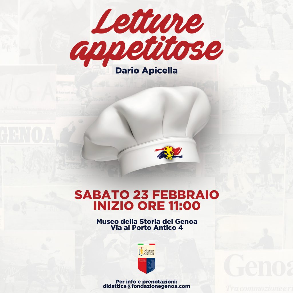La Fondazione Genoa, con la collaborazione di Dario Apicella, organizza il laboratorio didattico “Letture appetitose”, che si terrà sabato 23 febbraio dalle 11 alle 12 presso Palazzina San Giobatta di Via al Porto Antico 4.