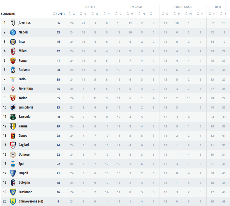QUINTO GRADINO – Con i tre punti conquistati contro il Bologna, i ragazzi allenati da Eusebio Di Francesco consolidano il quinto posto in classifica lasciandosi così alle spalle Atalanta e Lazio. Sono invece 10 le lunghezze che separano il Genoa dal Bologna, affrontato tra le mura del Dall’Ara appena una settimana fa.