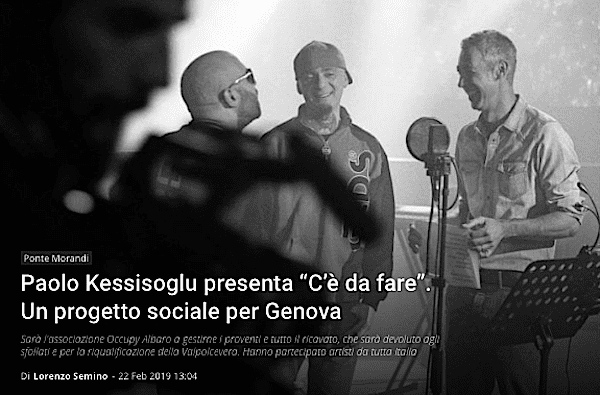 Il sogno? Poter costruire un centro sportivo a pochi passi dal luogo in cui è avvenuto il crollo – ricorda in una nota stampa Occupy Albaro, l’associazione che gestirà i proventi – e laddove diedero i primi calci al pallone anche quelle che poi sarebbero diventate le due squadre principe nel capoluogo ligure. In una città così emotivamente legata al calcio, anche Genoa e Sampdoria diventano un modo come un altro per unire. Movimento popolare che si unisce al mondo della musica. Tutte le donazioni ricevute, è bene ricordarlo, saranno comunque destinate ad un’iniziative di assistenza socio-sanitaria nella zona della Valpolcevera. In grassetto le nostre domande a Paolo Kessisoglu, in corsivo le risposte:
