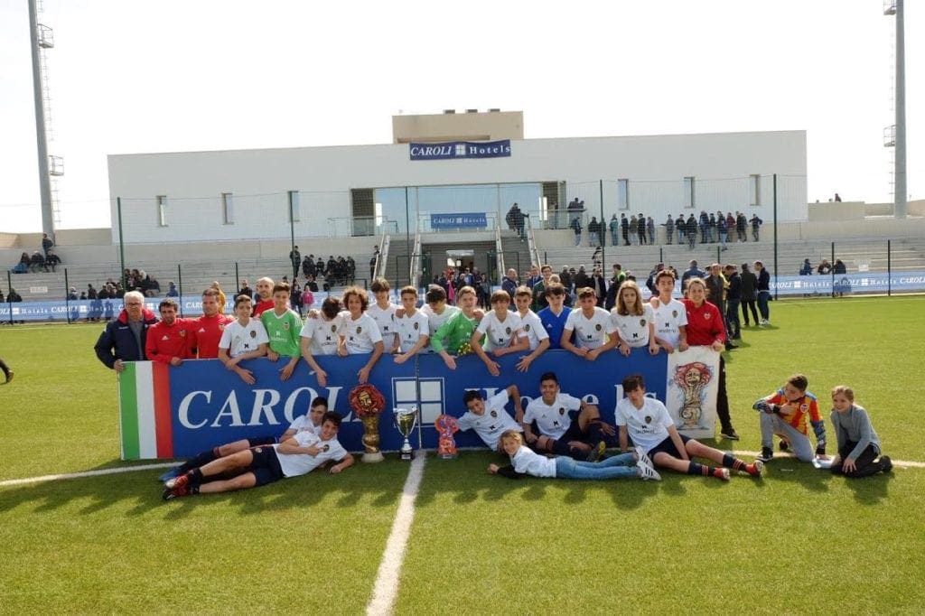 Per quanto riguarda la categoria Giovanissimi, a trionfare è stato il Valencia (primissima società spagnola a partecipare al trofeo salentino, ndr) grazie al 2-0 inflitto in finale alla Sampdoria allenata da Matteo Pastorino, che aveva condotto i giovani in maglia blucerchiata fino all’ultimo atto della competizione grazie alle vittorie su Empoli, Nick Bari, Los Aromos, Torino ed Atalanta. Dopo un primo tempo equilibrato, gli spagnoli sono passati in vantaggio con Fernando Jose Ledesma Zambrano, che ha poi raddoppiato nei minuti di recupero. Organizzato in collaborazione con La Giovane Italia, il Trofeo Caroli Hotels prevedeva anche quest’anno un periodo di autogestione: “i ragazzi , dopo un colloquio nello spogliatoio con il proprio allenatore, hanno vissuto l’esperienza della partita senza la figura del tecnico, seduto in tribuna”. Nella passata stagione anche il Genoa aveva preso parte al torneo, con le selezioni Under 14 maschile e l’Under 15 femminile, sconfitta solamente in finale dalle coetanee della Roma.