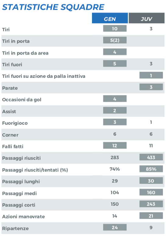 LE STATISTICHE DI GENOA-JUVENTUS FORNITE DALLA LEGA SERIE A GENJUV