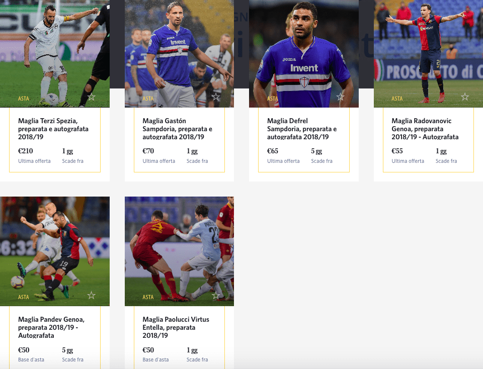 Infatti è possibile aggiudicarsi, sul sito di CharityStars, le maglie autografate di Radovanovic e di Pandev, oltre a quelle di Ramirez e Defrel. È online anche quella di Terzi, capitano dello Spezia. All’asta partecipa anche Paolucci, che ha indossato per la prima volta la fascia da capitano della Virtus Entella in occasione della vittoria interna per 3-1 contro la Pistoiese.