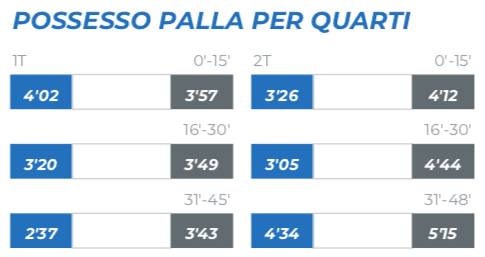 Le statistiche confermano che, al di là delle scelte tecniche iniziali che il campo pregiudicato dopo appena 180 secondi e un pallone perso in mezzo al campo che non ha trovato