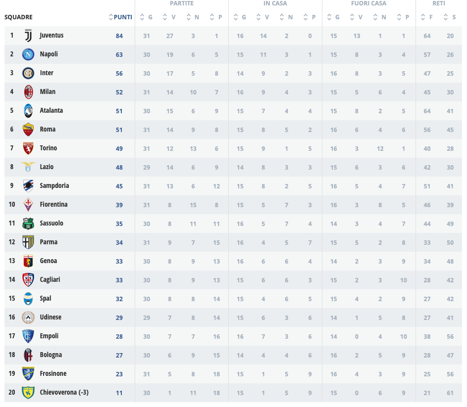 La Fiorentina, dal canto suo, è attesa da due gare importanti per la tifoseria viola: Bologna e Juventus. Derby dell’Appennino e sfida storicamente sentitissima, con buone probabilità contro una Vecchia Signora già campione d’Italia. Due gare per onorare una stagione ormai proiettata all’anonimato. Alle ore 15 importantissime le sfide tra Udinese ed Empoli e quella tra Cagliari e Spal.
