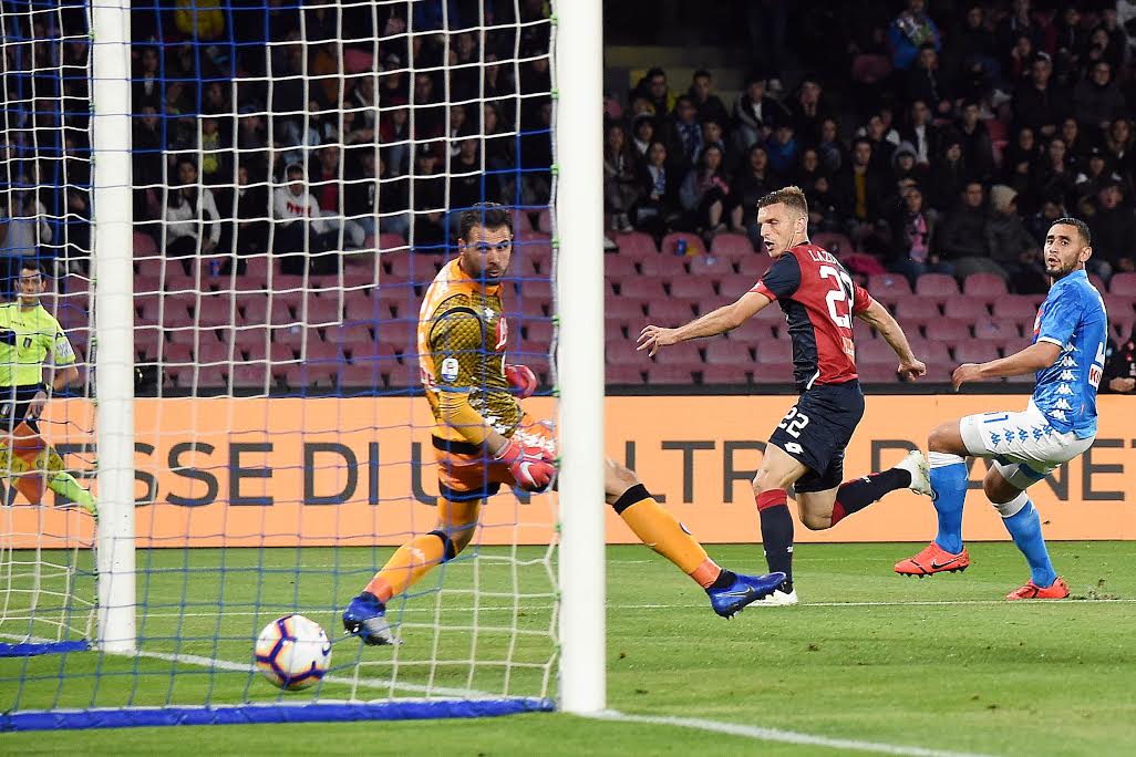Il Genoa prova a farsi vedere dalle parti di Karnezis, col Napoli che sul ribaltamento di fronte trova il primo angolo della sua partita su buona chiusura di Criscito. Al 7′ è grande l’occasione per il Grifone che prima cerca di andare sul fondo con Lazovic, che si inciampa sul pallone, poi recupera un pallone che Fabian Ruiz maldestramente spedisce a rimorchio per Maksimovic. Kouamè la recupera, serve Pandev che, a sua volta, prova a chiudere il triangolo con un tocco sotto, ma senza esito e senza trovare compagni a centro area.