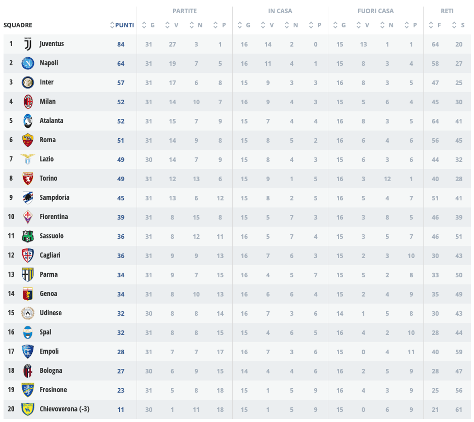 NAPOLI (4-4-2): Karnezis; Hysaj, Maksimovic, Koulibaly, Ghoulam; Callejon, Allan, Fabian Ruiz, Zielinski; Mertens, Milik. Allenatore: Carlo Ancelotti