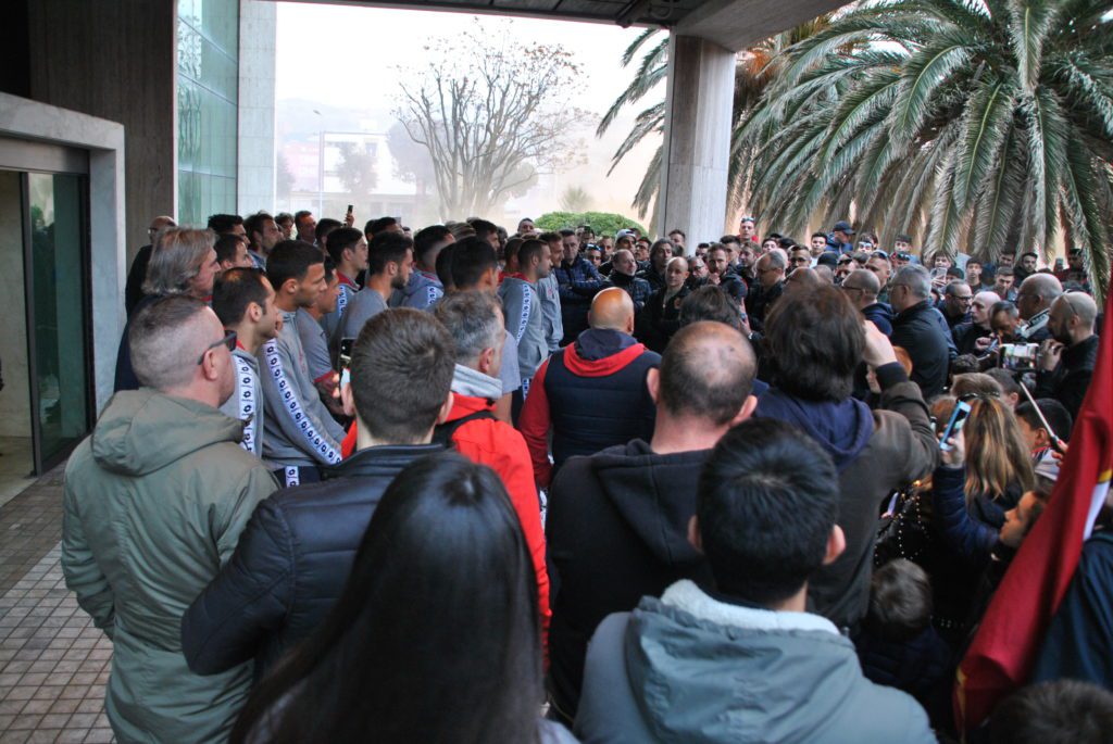 Blade Runner, Trecento, Il Gladiatore, I Guerrieri Della Notte. Quattro film che rendono l’idea di quanto e come dovranno lottare, i giocatori del Genoa, domani sul prato verde del Ferraris. C’è anche questo consiglio cinematografico, alla vigilia del derby, nel discorso motivazionale gridato a mani giunte dai tifosi rossoblu accorsi sotto il Tower Hotel Genova Aerporto, almeno 500. Bandiere, sciarpe, fumogeni, tifo. E la richiesta che domani il Ferraris sia una bolgia dal primo all’ultimo minuto, con la Gradinata Nord a cui rivolgere lo sguardo per motivarsi. Di seguito il video che ritrae le centinaia di persone accorse per sostenere il Genoa a poche ore dal derby contro la Sampdoria.