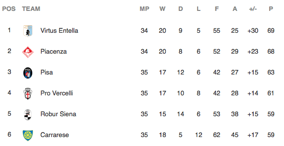 La Virtus Entella chiude la pratica Arezzo con più di una difficoltà. Non c’è soltanto la rete di Brunori a complicare i piani di Boscaglia, perché la stanchezza comincia a farsi sentire ed il Piacenza prosegue la corsa inarrestabile alla ricerca disperata del primato in classifica, posizione che varrebbe la promozione diretta in Serie B.