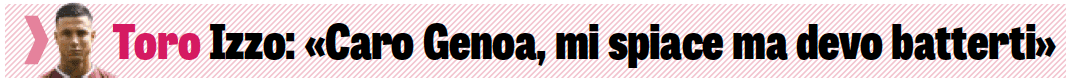 virgolettati di Armando Izzo, a cui è dedicata un approfondimento alla vigilia della sfida contro la sua ex squadra. “Genoa, ti porterò sempre nel cuore e mi perdonerai, ma domani devo batterti” è l’esordio dell’articolo, che fa capolino anche in prima pagina.