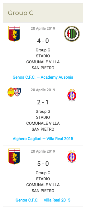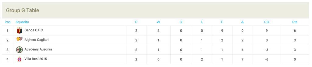 Le sfide odierne hanno visto il Genoa scendere in campo al mattino contro l’Academy Ausonia (4-0 con reti di Lipani, Fini, Bombaro e un autogol) e nel pomeriggio contro il Villa Real 2015 (5-0 maturato coi gol di Fini, Scimone, Sarpa, Tassone e Perria). Due vittorie rotonde che, domani, vedranno i rossoblu completare il quadro con la sfida all’Alghero, valida per la testa del girone. Nel pomeriggio di domenica, il Genoa potrebbe trovarsi di fronte al PSG Under 14.