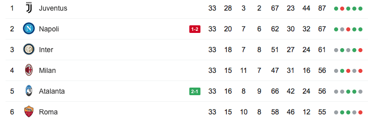 L’Atalanta torna prepotentemente in corsa, ora più che mai, per un posto in Champions League. Il Napoli passa nel primo tempo, sotto il diluvio del San Paolo, la Dea stende i padroni di casa con una rimonta portentosa nel secondo tempo: a Mertens rispondono prima Duvan Zapata, poi Pasalic. Gasperini, allontanato dal direttore di gara a partita in corso, si gode il ribaltone nerazzurro che porta grandi cambiamenti in graduatoria. Pasquetta bagnata e rovinata ad Ancelotti, uscito tra i fischi ed avvicinato dall’Inter.