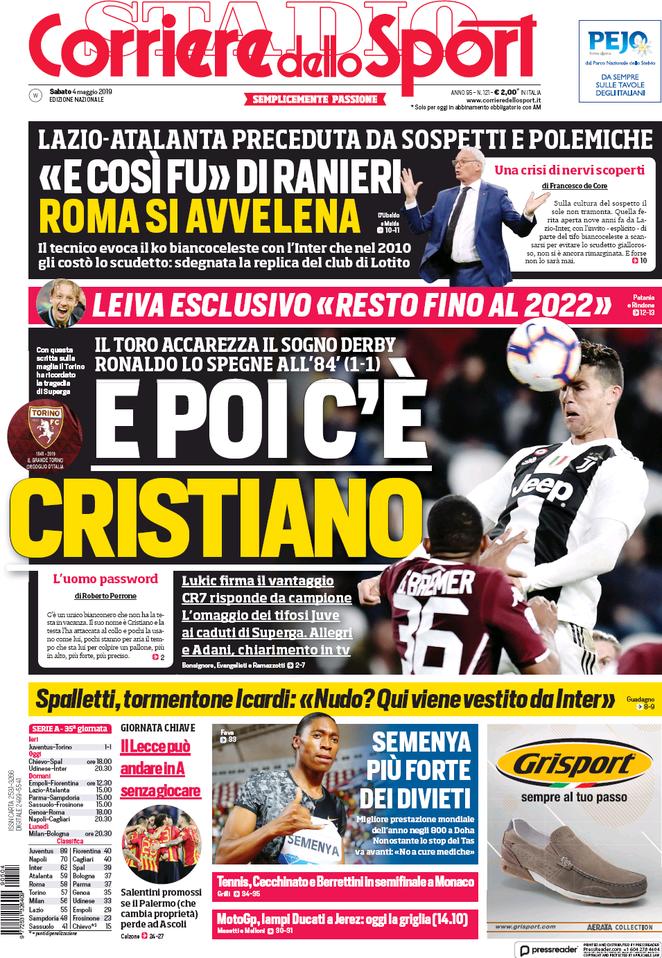 LE PRIME PAGINE DEI QUOTIDIANI SPORTIVI