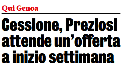 GAZZETTA DELLO SPORT – La rosea, invece, propone un breve trafiletto che non fa altro che ribadire come ad inizio prossima settimana Preziosi attenda un’offerta da un potenziale