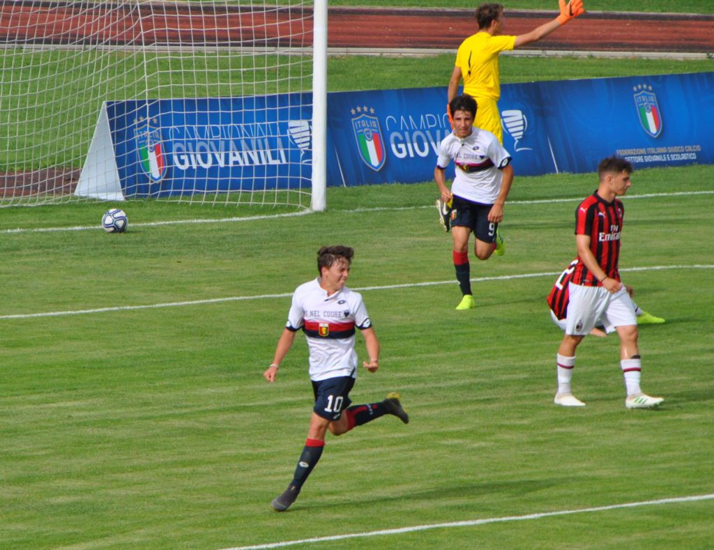 Il Genoa, che attaccherà inizialmente da destra verso sinistra, veste la maglia bianca a bande rosse e blu. Sopra la banda la scritta “Orsy nel Cuore“. La gara parte subito forte col Milan che trova qualche opportunità sulla destra dove agisce Anane e segnerebbe al 4′ di gioco, quando Boni batte Ascioti in uscita. In realtà il numero 8 rossonero si accompagna il pallone col braccio e l’arbitro Scarpa (sezione di Collegno, ndr) annulla la marcatura. Punteggio fermo sullo 0-0. Al minuto 7′ reclama ancora il Milan per un fallo di mano di Gagliardi in ribattuta su tiro di Boni, ma per il direttore di gara non c’è nulla.