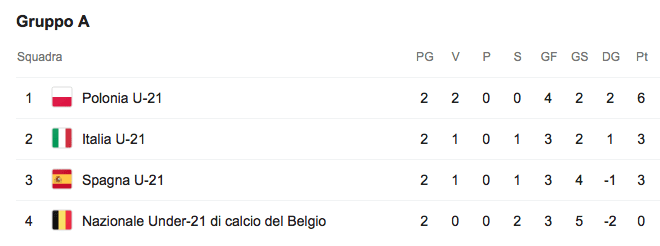 L’Italia Under 21, sotto gli occhi di Roberto Mancini, non ripete la rimonta messa in atto contro la Spagna e si complica la vita nel Girone A degli Europei di categoria. Al Dall’Ara di Bologna passa la Polonia grazie al gol del difensore Bielik, già decisivo nella poderosa vittoria contro il Belgio, prossimo avversario degli Azzurrini e già aritmeticamente eliminato. L’Italia va sotto, spreca con Mandragora e colpisce un palo con Pellegrini ripiegando su sé stessa, quindi perde il duello contro un avversario capace e disposto a chiudersi nel proprio guscio. Orsolini si fa male, Zaniolo rischia il rosso e salterà l’ultima partita del girone, decisiva per proseguire il cammino all’Europeo Under 21. “Ci siamo un po’ innervositi – commenterà il ct Di Biagio – Volevamo raggiungere tutto e farlo subito. Ora la qualificazione si complica”. Sabato sera al Mapei Stadium, contro il Belgio, servirà una vittoria per poi osservare il risultato della Polonia contro la Spagna, che grazie alla vittoria conquistata sul filo di lana questo pomeriggio si è portata a pari punti con l’Italia. In caso di parità si valuteranno in successione scontri diretti, differenza reti e reti segnate.