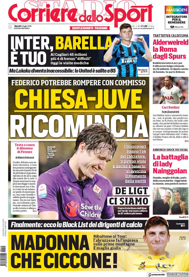 GAZZETTA DELLO SPORT – Sulla Gazzetta dello Sport questa mattina si parla ancora di del caso Jan Hurtado, malgrado nella notte sia passato ufficialmente al Boca Juniors. Spazio anche ad un breve trafiletto su Romero che da ieri è tornato rossoblu e si è detto pronto “per un grande anno”. Rossettini e Lapadula pronti a firmare per il Lecce, mentre Pezzella è vicinissimo al Parma.