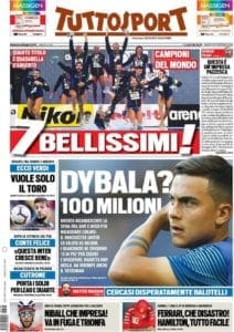 LE PRIME PAGINE DEI QUOTIDIANI SPORTIVI