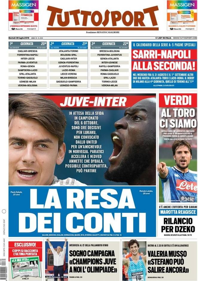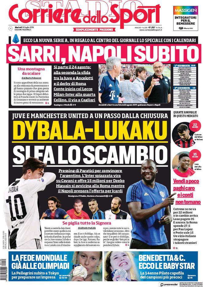 GAZZETTA DELLO SPORT – La rosea è questa mattina focalizzata solamente sull’amichevole andata in scena a Dinard e finita 5-1. Sul fronte mercato, invece, vengono rilanciati sempre i soliti profili, da Kamada a Biglia. “Un maestro di calcio” è l’appellativo che l’ad rossoblu Zarbano attribuisce ad Aurelio Andreazzoli, che sarà il tecnico più anziano della prossima Serie A.