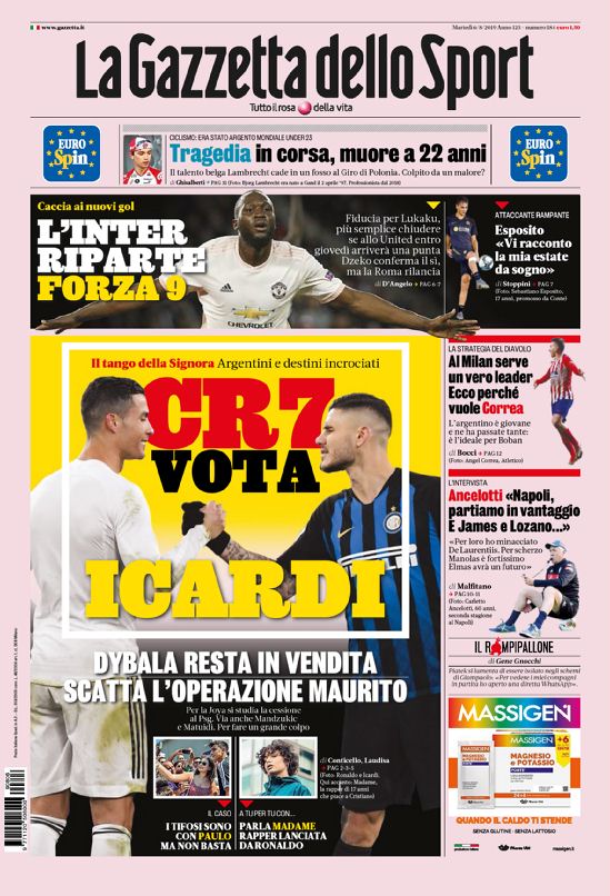 GAZZETTA DELLO SPORT – La rosea parla questa mattina dell’infortunio di Cassata, attribuendogli solamente nel titolo una prognosi di trenta giorni, e poi si concentra sull’arrivo di Saponara, ieri al “Baluardo” per le visite mediche. Oggi sarà la giornata di Schone. Il Bologna, intanto, accende l’asta col Sassuolo per arrivare a Christian Kouamè.