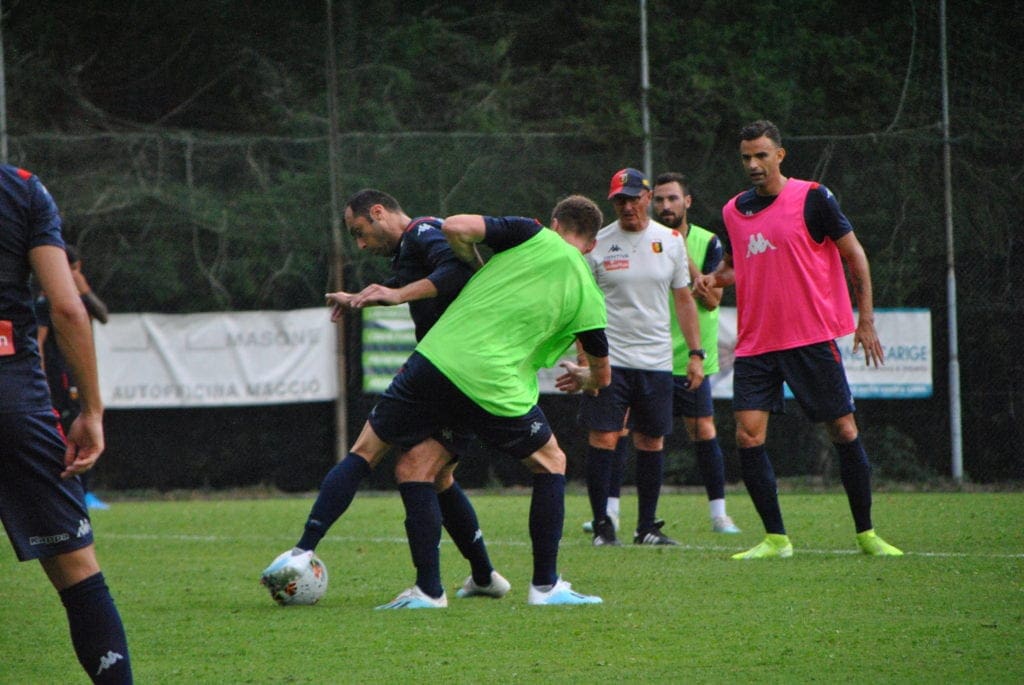 Dopo un torello in famiglia, un 11 contro 11 a campo ridotto ha animato i presenti. Da una parte Radu, Zapata, Romero Criscito, Ghiglione, Barreca, Lerager, Saponara, Schone, Kouamè, Pinamonti; dall’altra Jandrei, Biraschi, El Yamiq, Jagiello, Romulo, Pandev, Cassata, Radovanovic, Gumus, Sanabria, Favilli. Grande ritmo in partitella, interrotto solo alle 11.36 per commemorare le vittime della tragedia di Ponte Morandi.