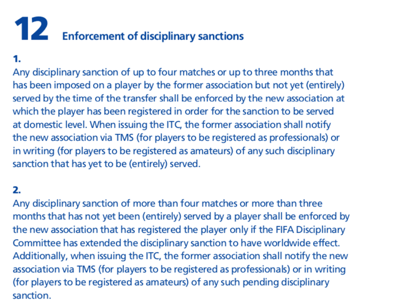 E secondo il Regolamento sullo Status di trasferimento dei calciatori aggiornato dalla FIFA nel giugno 2019, “qualsiasi sanzione disciplinare fino a quattro partite o fino a tre mesi che sia stata imposta a un giocatore dalla precedente associazione ma non ancora (interamente) notificata al momento del trasferimento deve essere applicata dalla nuova associazione in cui il giocatore è stato registrato affinché la sanzione sia scontata a livello nazionale“. Effettivamente, alla data del trasferimento di Agudelo in Italia, lo scorso 3 agosto, il calciatore colombiano non aveva ancora scontato né ricevuto comunicazione della squalifica. Una sanzione che verrà quindi comminata nel campionato di Serie A, come riportava questa mattina il sito ufficiale del Genoa.