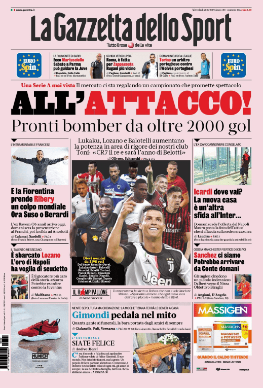 TUTTOSPORT – “Il Genoa è in vendita, Kouamè no!“. Gioca su questo titolo Tuttosport per rilanciare ancora un volta le parole del presidente Preziosi intervenuto ieri a Pegli in occasione dell’inaugurazione del nuovo centro sportivo rossoblu. Due colonne dove è stato condensato un lungo discorso, durato circa un quarto d’ora, e incentrate specialmente sulla questione calciomercato. Anche il quotidiano sportivo piemontese, nel frattempo, accosta Defrel a decine di squadre: e potrebbe essersi riaperto un derby di mercato tra Genoa e Sampdoria.