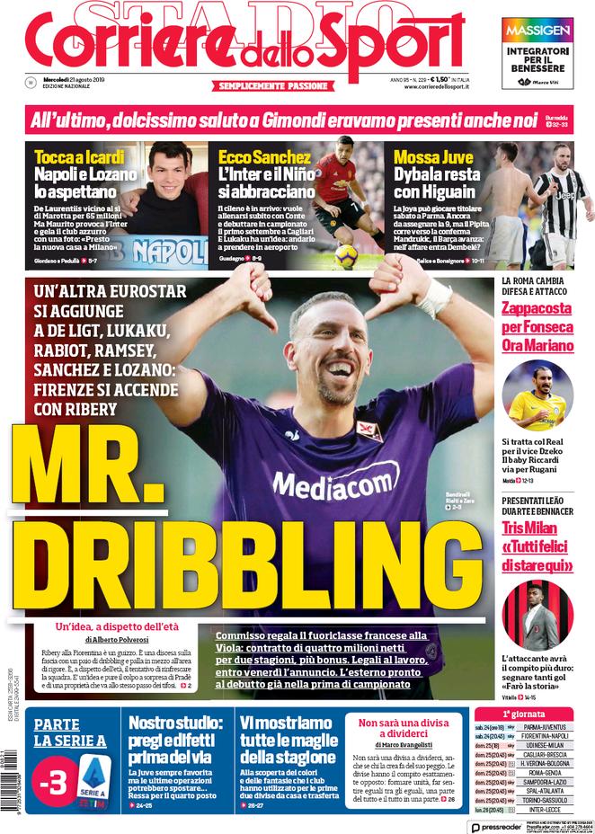 CORRIERE DELLO SPORT – Delle parole del presidente Preziosi rilasciate ieri a Pegli (clicca QUI per ascoltarle), il Corriere ne evidenzia solamene alcune, facendo un titolone sui 100 milioni che potrebbero convincere il Genoa a cedere Kouamè. Altrimenti, su precisa richiesta dell’allenatore, l’attaccante ivoriano non si muoverà da Genova. Stamane si parla anche di Pajac e del contratto depositato così come della presentazione di Brlek come nuovo giocatore dell’Ascoli.