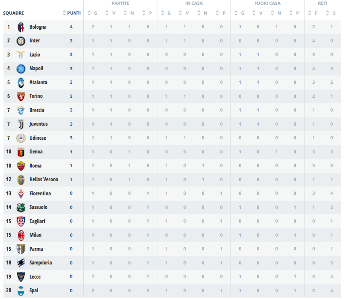 La seconda giornata del campionato di Serie A è stata aperta dal derby emiliano Bologna–Spal. I felsinei di Sinisa Mihajlovic, in panchina per la seconda volta consecutiva dopo l’apparizione settimana scorsa al “Bentegodi”, tornavano tra le mura amiche dopo un pareggio; i ferraresi, invece, arrivavano da una sconfitta casalinga contro l’Atalanta.