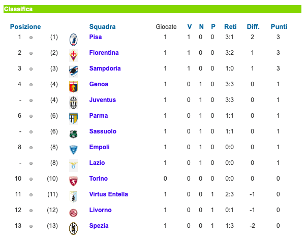 LA CLASSIFICA (tratta da www.ilcalcioonline.it)