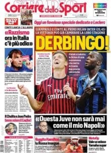 Questa sera in campo tre partite di Serie A: alle 15 va in scena Udinese-Brescia, alle 18 Juventus-Verona, si chiude con il derby fra Milan ed Inter in programma a partire dalle 20.45. Conte si schiera contro il razzismo: “In Italia c’è più odio”. Buffon si prepara al ritorno in campo, largo anche a Dybala. Il Cholito Simeone e Joao Pedro fanno volare il Cagliari nell’anticipo del venerdì sera.