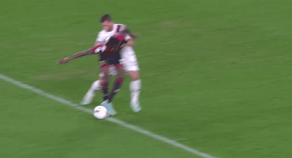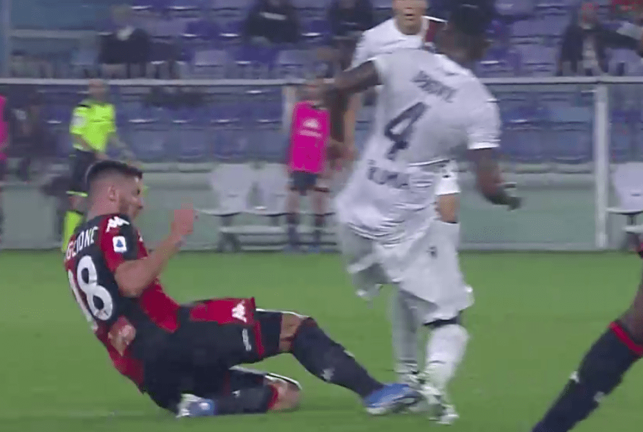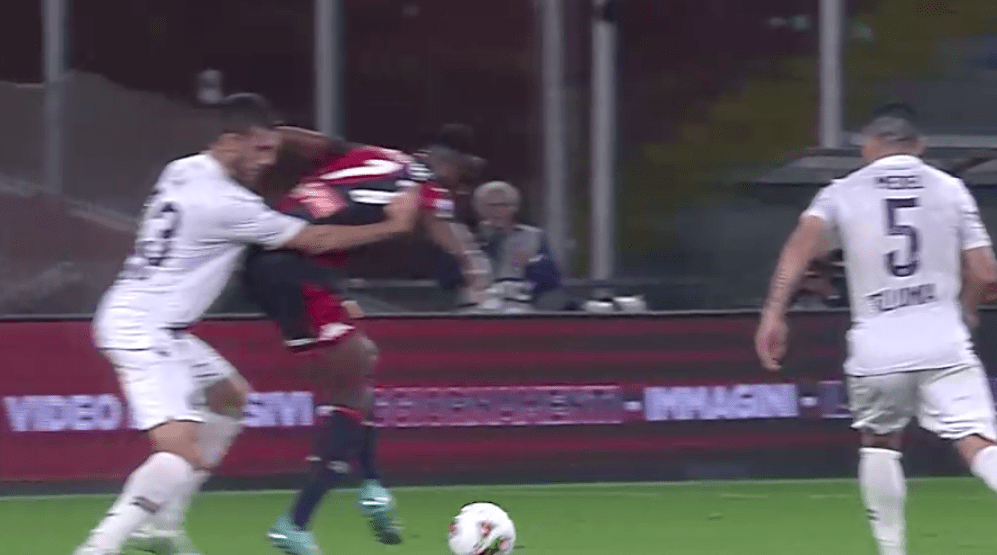 L’esterno rossoblu si allunga troppo il pallone e cerca di recuperarlo in scivolata entrando in contatto sull’avversario. Denswil viene effettivamente colpito, ma c’è un particolare di non poco conto: Ghiglione si accorge di rischiare l’intervento falloso e prima di colpire l’avversario toglie la gamba tesa e la ritrae, senza entrare col piede “a martello”. Intelligente e ponderata la scelta del numero 18, ma altrettanto la valutazione di Massa: cartellino giallo e punizione. In altri casi, già analizzati, la vera discriminante era stata proprio il piede a martello oltre a negligenza e vigoria sproporzionata: l’ultimo caso in ordine di tempo ad aver fatto discutere è stato il fallo di Barella su De Paul in Inter-Udinese, giudicato da giallo (ma una revisione al VAR avrebbe dovuto tramutarlo in rosso).