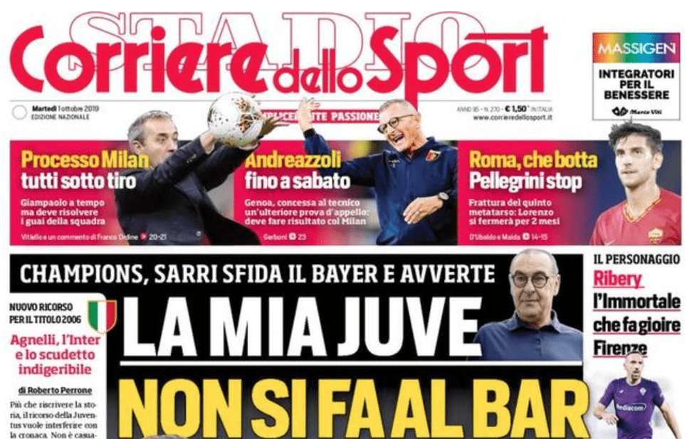 LE PRIME PAGINE DEI QUOTIDIANI SPORTIVI